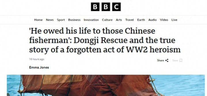 暑期档电影《东极岛》正在热映,影片讲述了1942年,一艘搭载英军战俘的船只在舟山群岛附近被潜艇击沉,上千名战俘被封锁在船舱内,命悬一线。危难之际,东极岛上的渔民,不顾风高浪急与生命危险,毅然驶向深海救人的故事。近日,英国广播公司网站发表一篇文章回顾了相关历史事件,标题是《“他的生命归功于中国渔民”:东极岛救援与二战中一段被尘封的英雄事迹》。